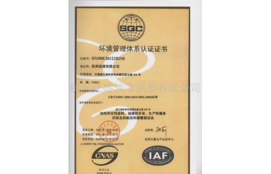 环境管理体系认证证书